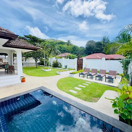 Jitsin Villa Koh Tao设有1间卧室,私人游泳池以及花园景的露台。